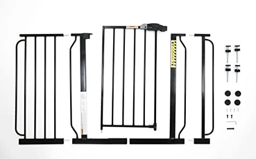 The Easy Step 49-Inch Extra Wide Baby Gate offers a secure and adjustable solution for wide doorways and hallways in homes with young children. Standing 30 inches tall, this steel safety gate fits openings between 29–38 inches and 42–49 inches wide using the included 4-inch and 12-inch extension kits. It features a convenient walk-through door with a secure latch and is designed for quick, pressure-mounted installation using the included wall cups. Certified to JPMA and ASTM safety standards, it’s ideal for children ages 6–24 months and also works great for pets.